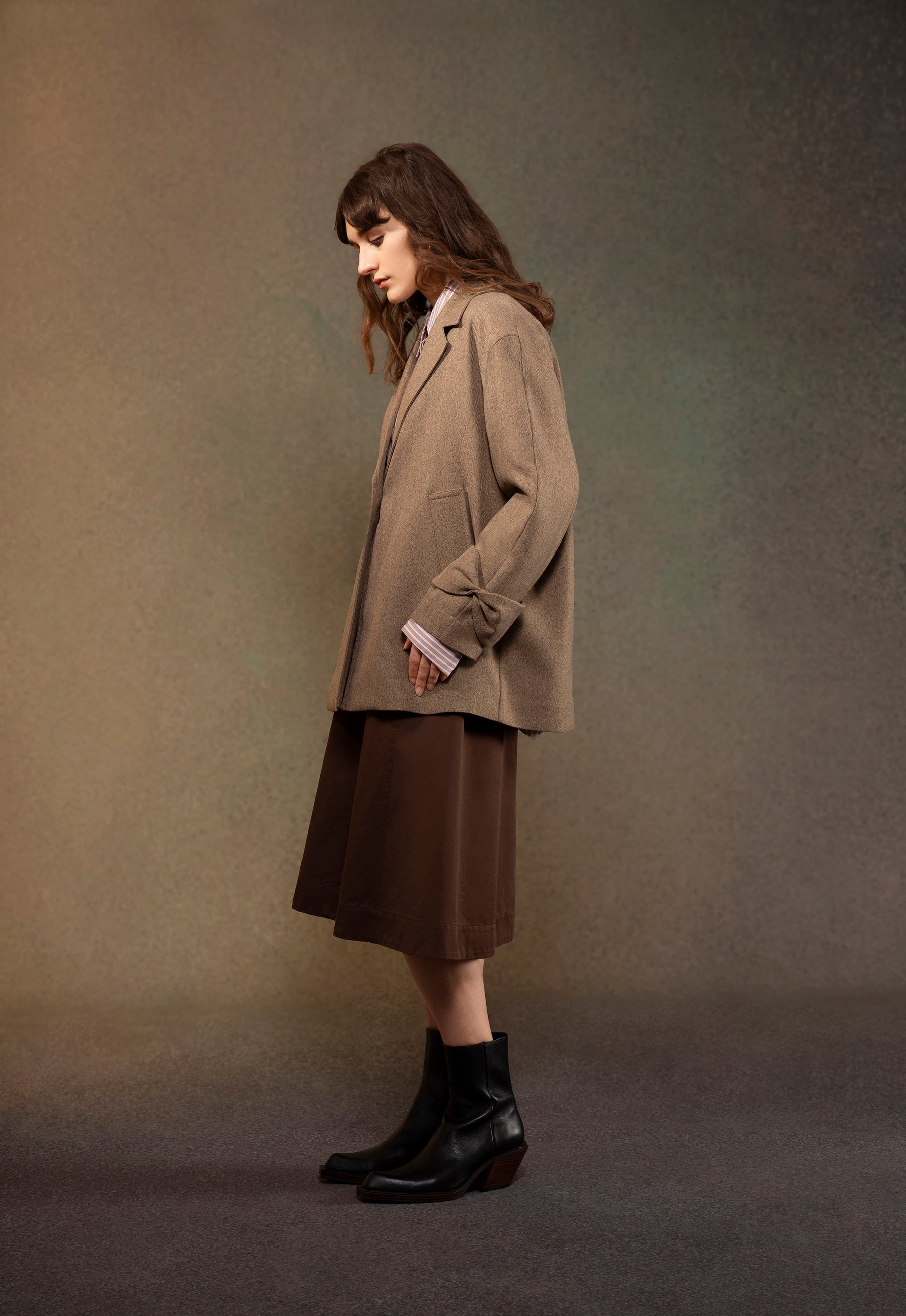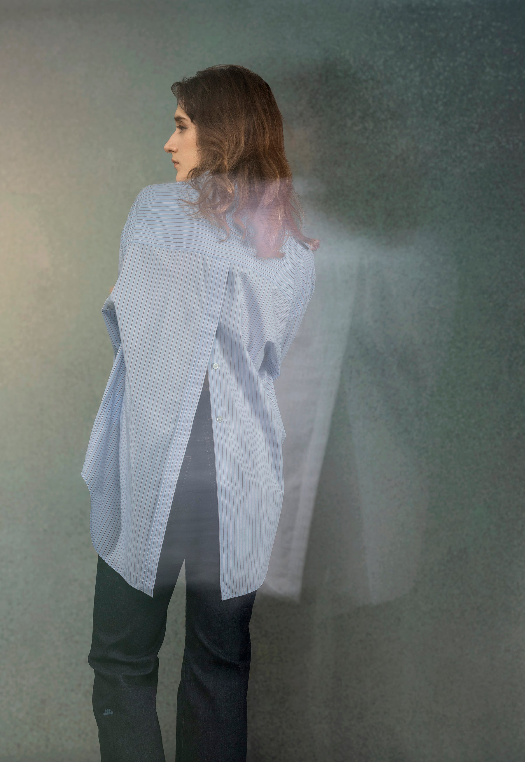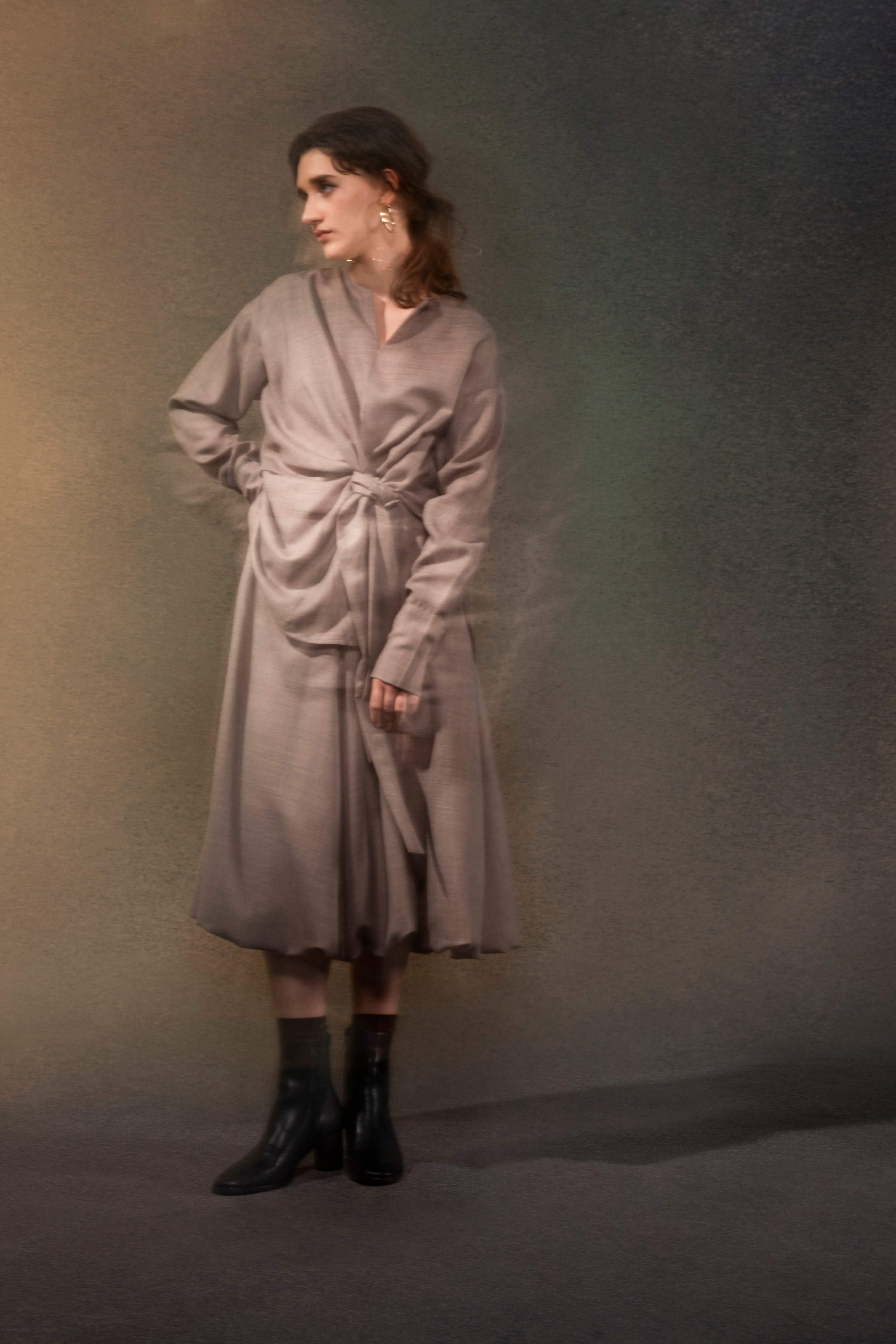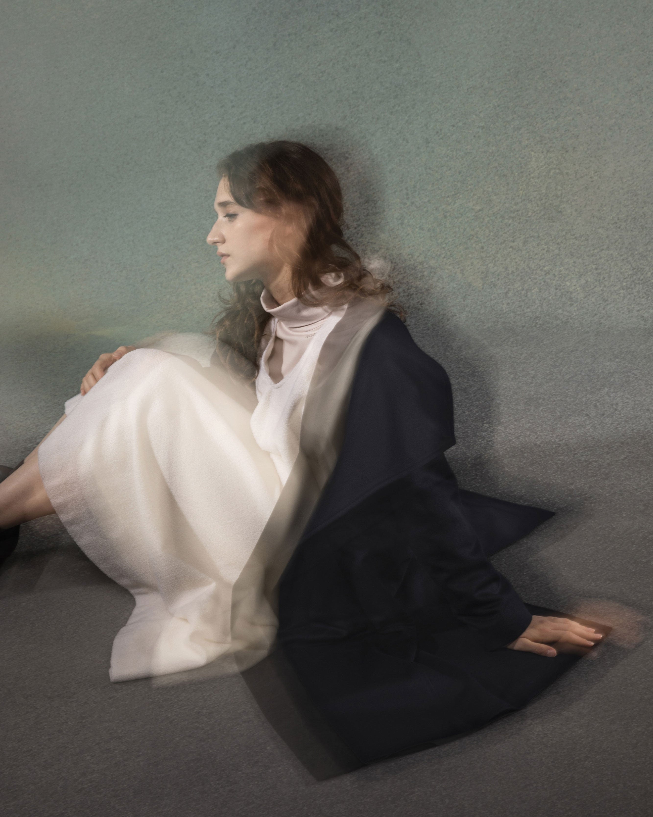 今シーズン、私たちは「インク」と「水」という、互いに流動的でありながら、溶け合うことで新たな表情を生み出す二つの要素に着目しました。その融合から着想を得たシルエットは、まるで夢の中に漂うような感情を呼び起こし、柔らかく流れるラインの中に、詩的な美しさが宿ります。
