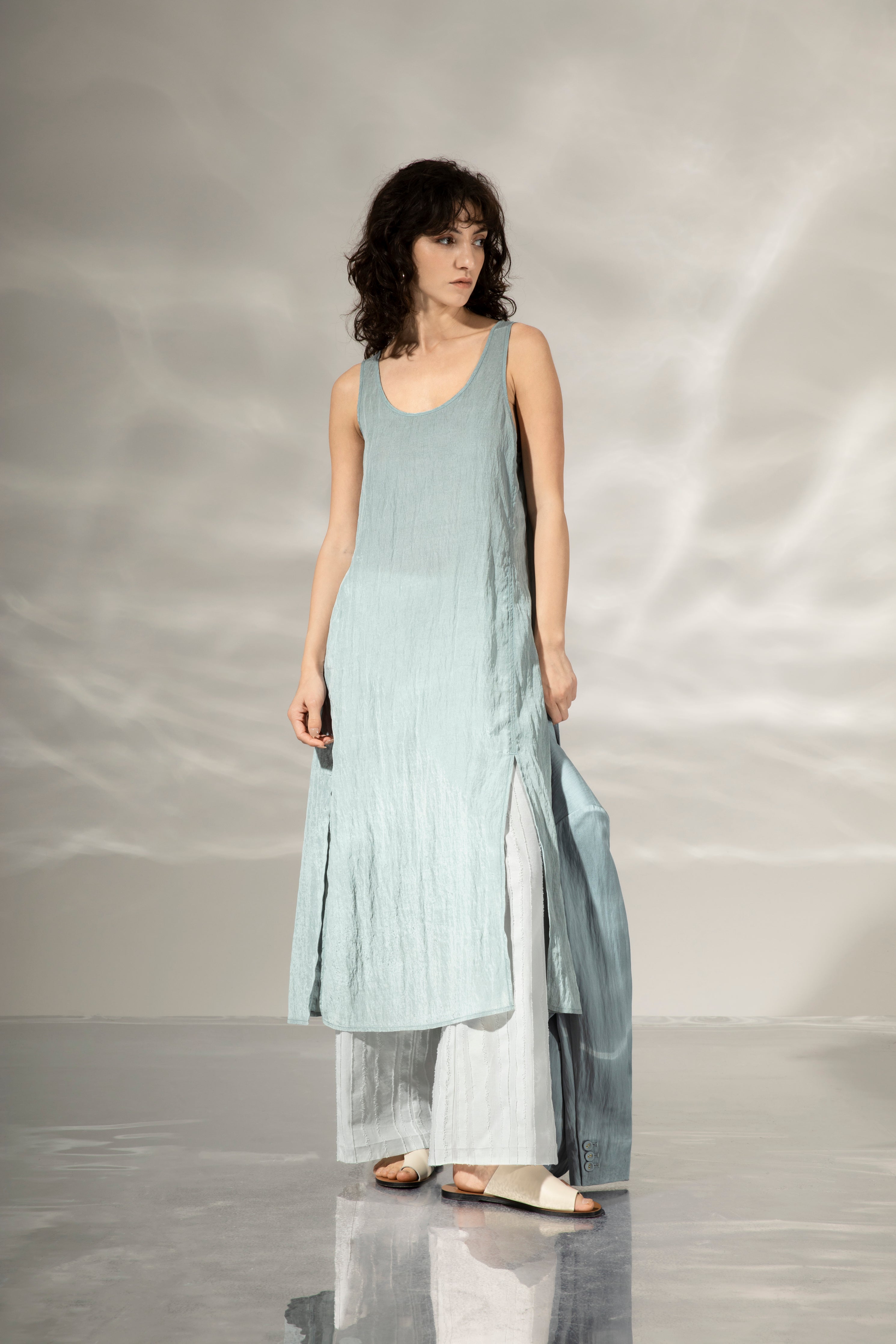 生命のきらめきが、優雅でオーガニックなフォルムとなって水面に舞い上がり、幾重にも重ねたレイヤーとレザーで描かれた詩的なシルエットへと昇華されていく。
